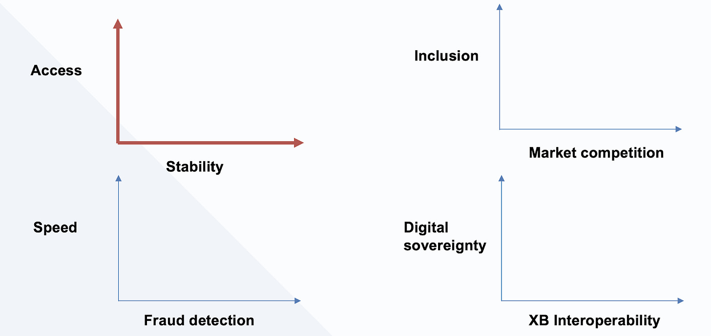 We discussed in our last post how the role of central banks within national payment infrastructures is evolving. Once relegated to the shadows of payment systems, central banks are now moving into the limelight, building out public payment rails for retail (not just wholesale) payments that exist toward the front end (not just the back end) of the payment chain. The framing question for our session at the DPI Summit: What new trade-offs must central bankers contend with as they step into this new role? And how should they navigate those trade-offs? Our conversation echoed what Edoardo Totolo, in a recent whitepaper, describes as the trilemma at the heart of DPI design: balancing public value, market dynamism, and systems integrity.